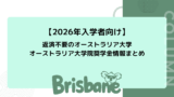 最新の正式要件は各大学の公式サイト・入学要項で必ず確認してください。ブリスベン留学ドットコムでは、志望コースの最新条件を無料でお調べします。